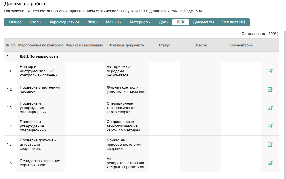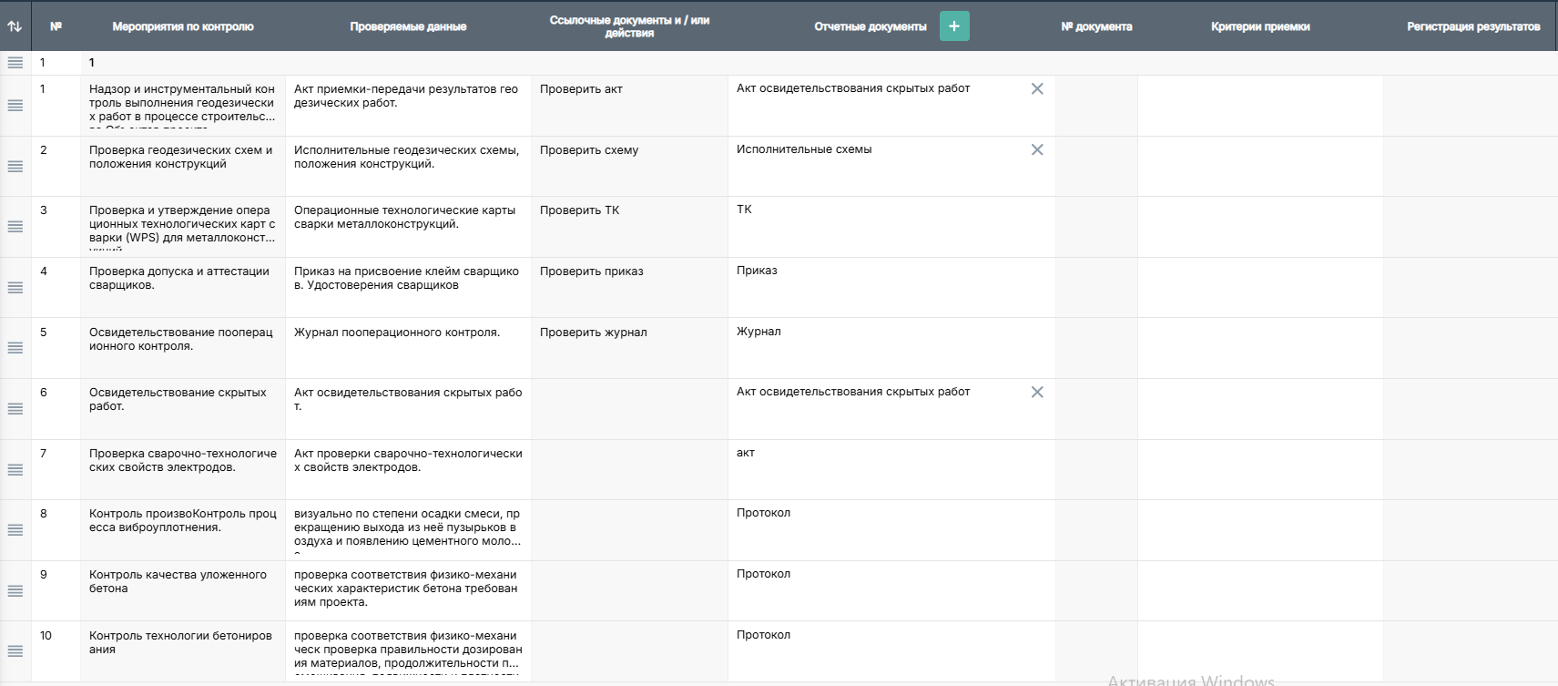 В программе Адепт пользователи могут создавать типовые планы контроля качества для каждого вида работ в виде шаблонов. Каждый ПКК включает перечень мероприятий и набор документации, необходимых для приемки. Например, план контроля качества бетонных работ может включать: