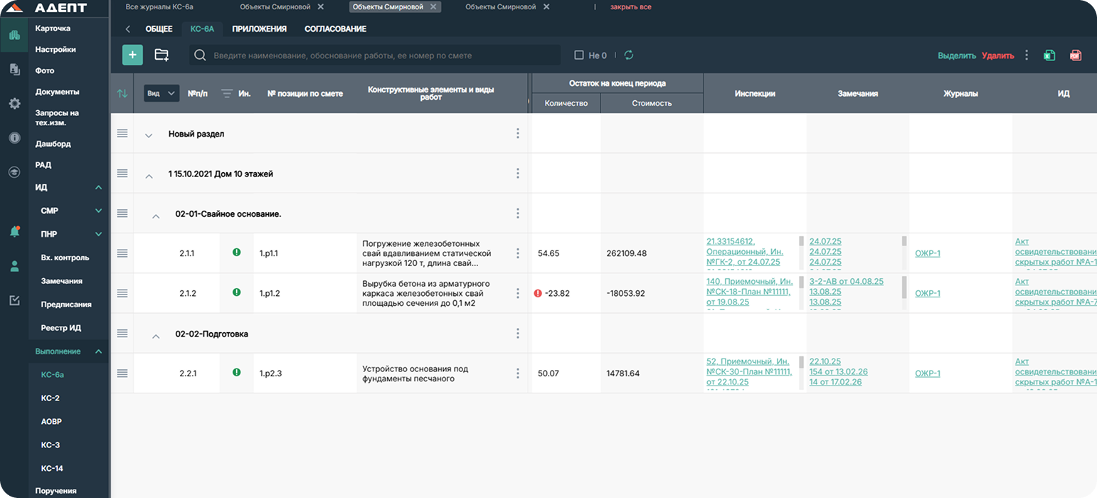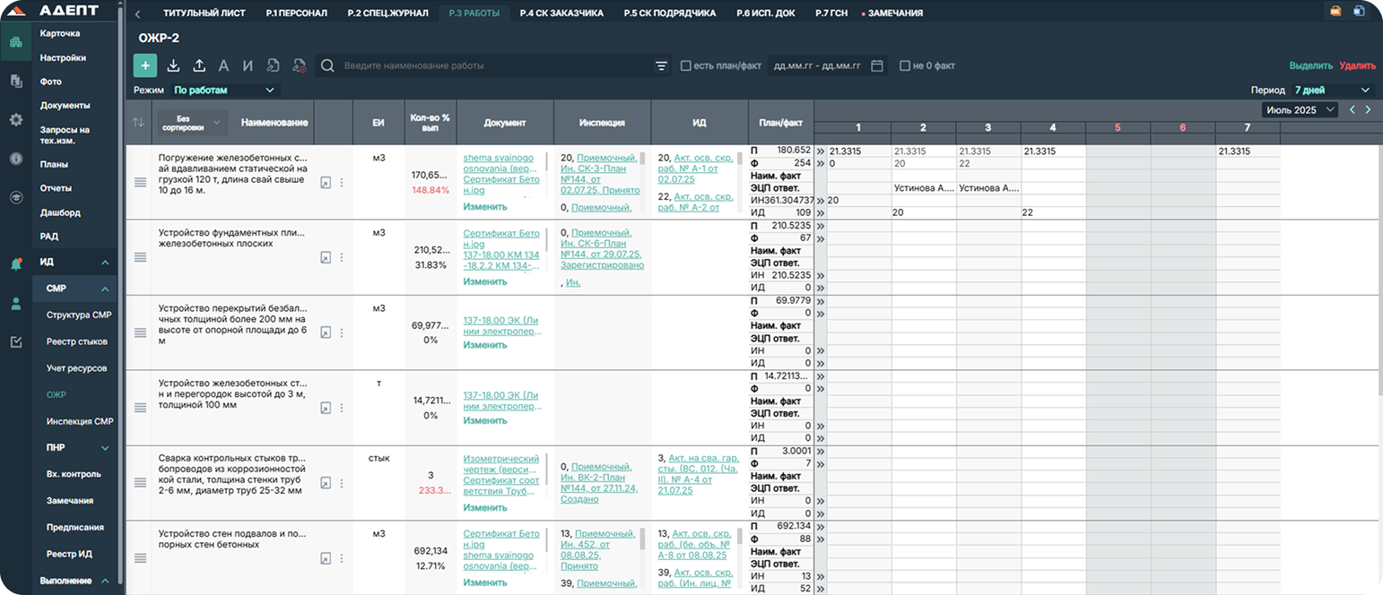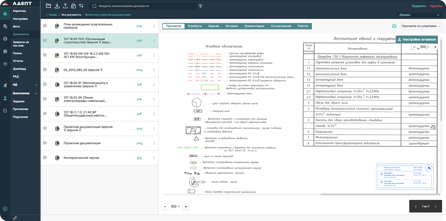 Подготовка и согласование исполнительной документации проходит в электронном виде. Реестр исполнительной документации формируется автоматически