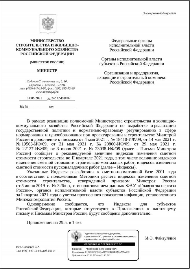 Скачать письмо с индексами (Приложение: на 29 л. в 1 экз.) можно по ссылке: индексы 2 квартал 2021(5 дополнение).pdf