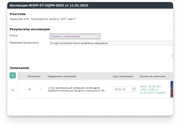 Специалисты строительного контроля планируют и согласуют проведение инспекций с Подрядчиками и Заказчиком, формируют замечания/предписания и контролируют устранение нарушений